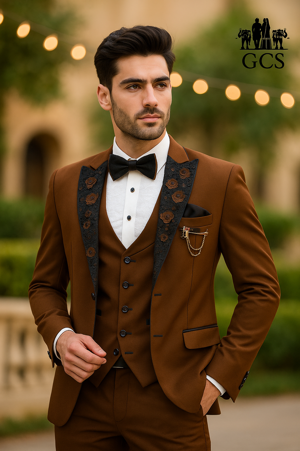 Chocolate Men's Embroidered 5 piece Coat Pant